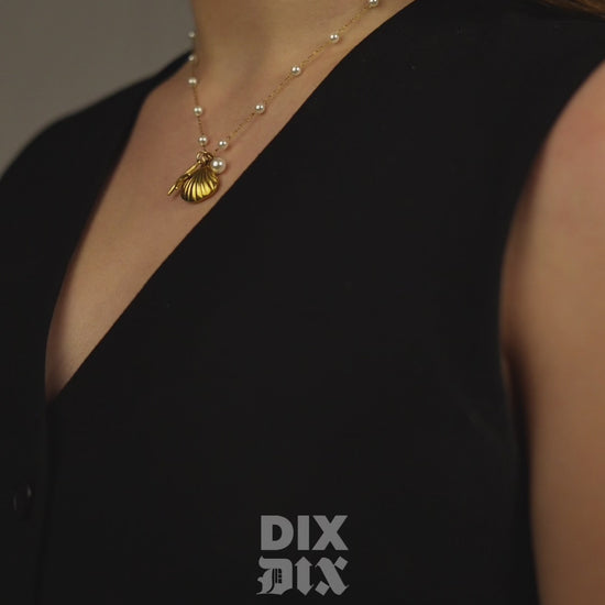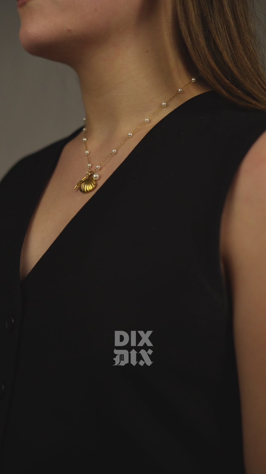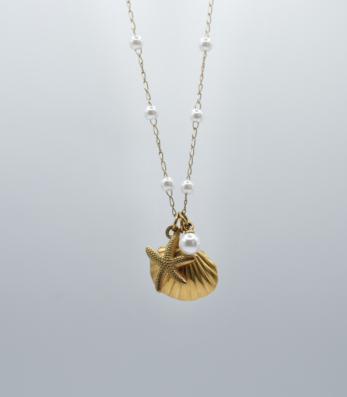Ses perles délicates et son pendentif coquillage doré rappellent la douceur des vagues et la beauté simple des journées ensoleillées.