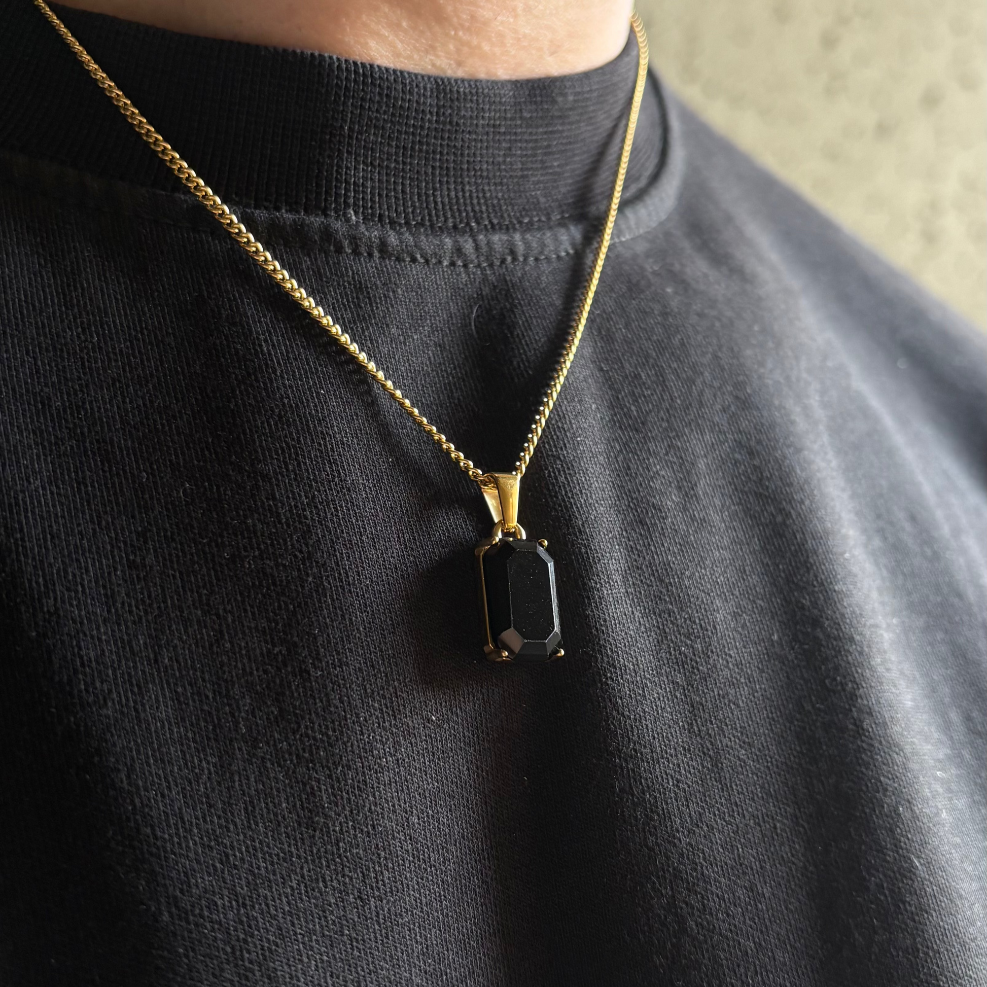Son fini doré éclatant et sa pierre noire profonde ajoutent une touche de caractère à n’importe quelle tenue, que ce soit pour une soirée ou un look décontracté.