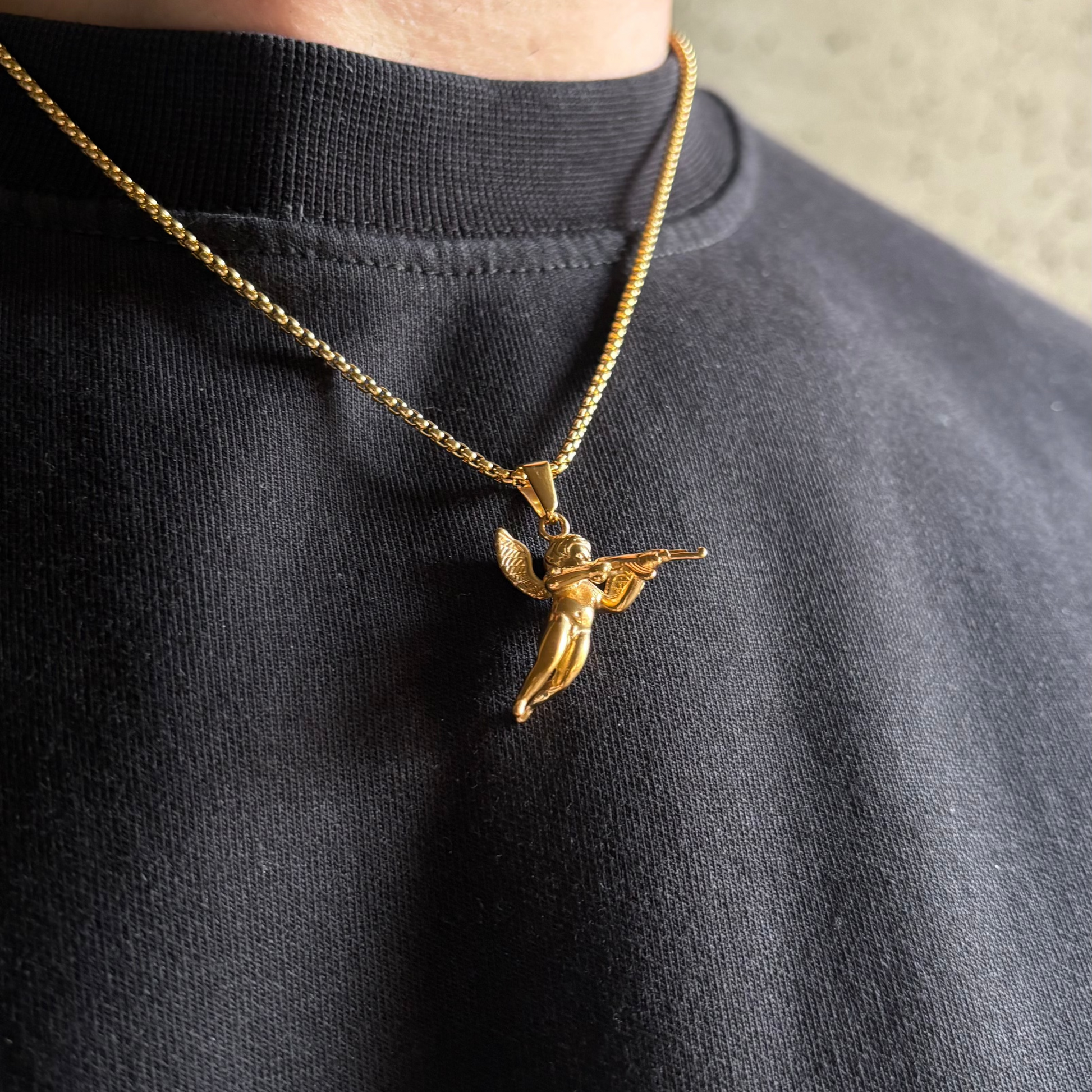 Le pendentif Cupidon Or capture la puissance de l’attraction et la beauté des détails avec une finition en acier inoxydable de haute qualité. Résistant à l’eau et à la sueur, il garde son éclat jour après jour sans ternir.